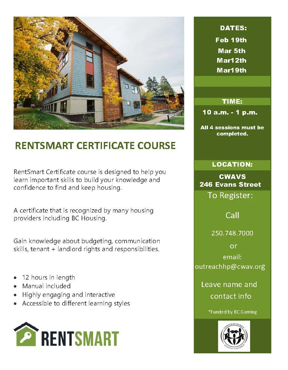 HPP at CWAVS is offering the RentSmart Certificate course starting February 19th !